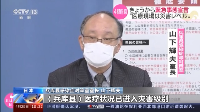 兵库县感染症对策室室长 山下辉夫:(兵库县)医疗状况已进入灾害级别,跟受灾地区几乎是同等程度,绝对可以说是正处在紧急状态中。