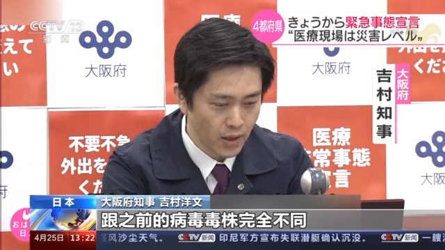大阪府知事 吉村洋文:新冠病毒变异株的传播非常惊人,跟之前病毒完全不同,我们必须基于此出台应对之策。