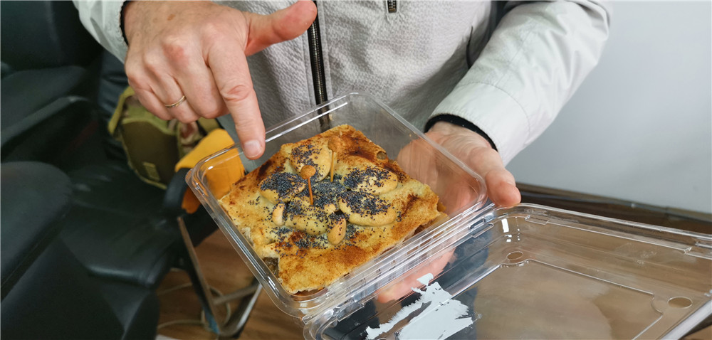 克列托夫展示自己制作的火星车造型梨子派。新华社记者 刘书辰 摄