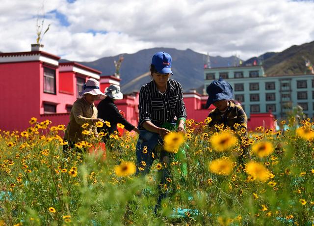 西藏拉萨市四季吉祥村村民在采摘雪菊。新华社记者 晋美多吉 摄