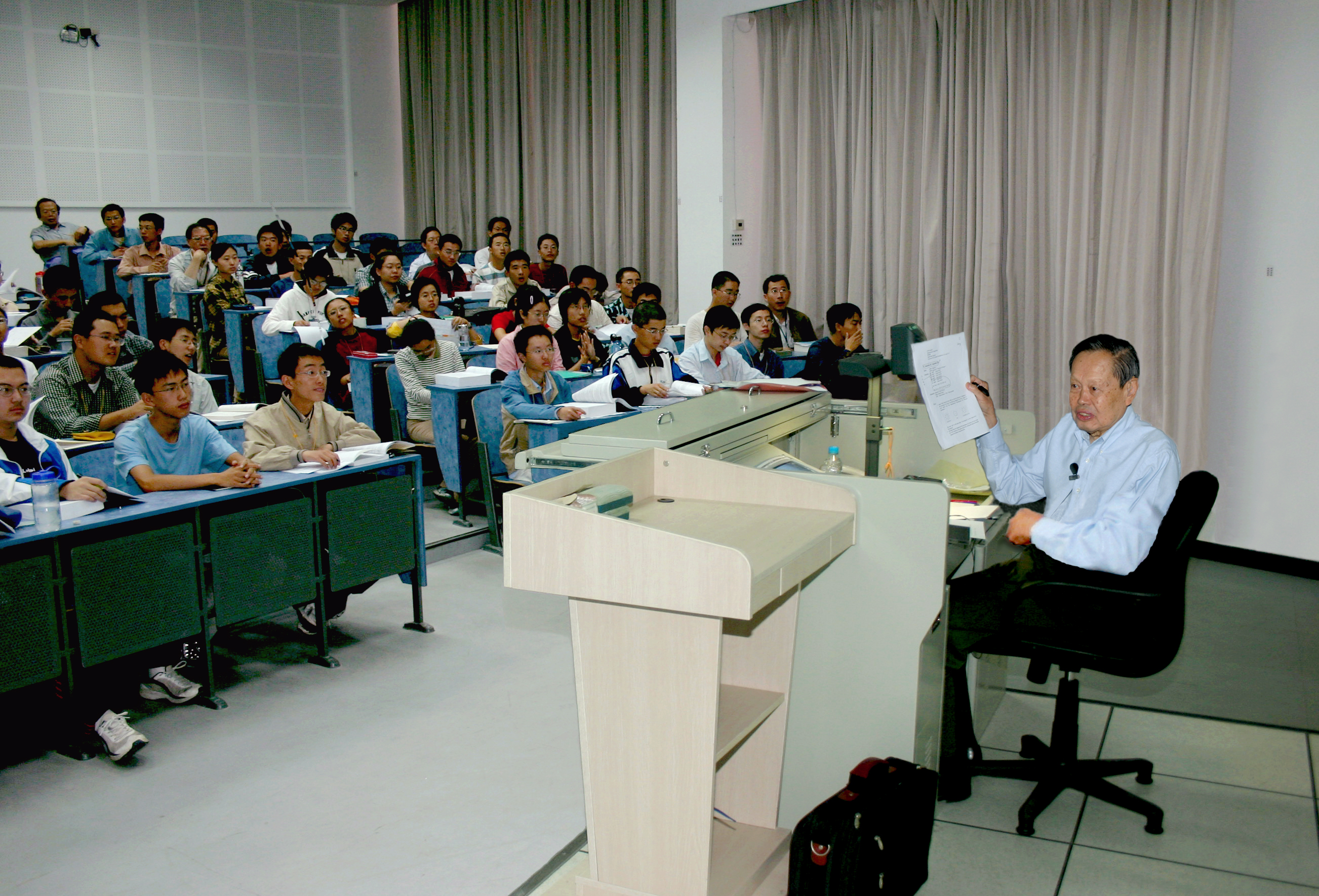 2004年杨振宁在为本科生授课。(清华供图)