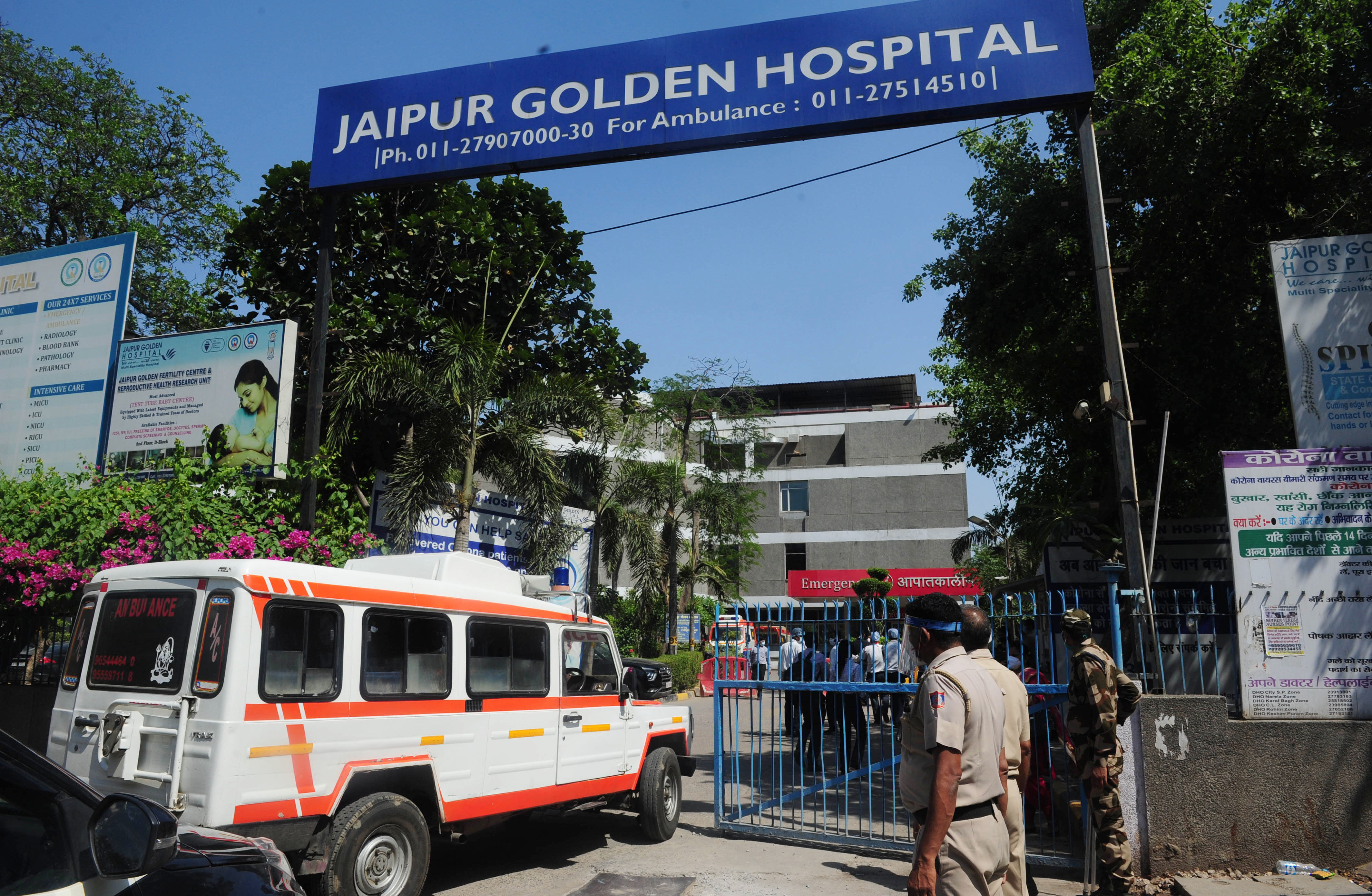 4月24日,救护车驶入印度新德里一家医院。(新华社发)