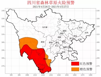 综合研判气象条件、林区物候、野外火源及火灾发生情况,预计4月26日—4月27日,上述地区森林草原火险等级仍将维持在高度及以上危险级别,防火形势十分严峻。经研究,四川省森防指办公室4月22日发布的高森林草原火险预警延长至27日,红色预警区域做适当调整。