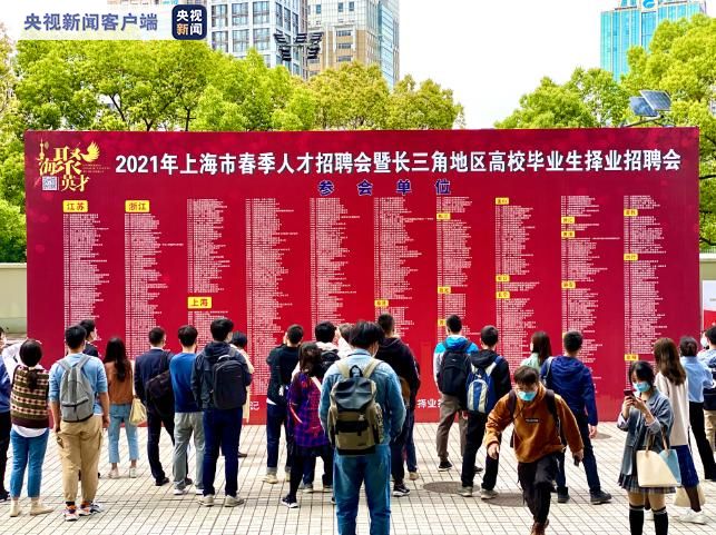 4月25日,由沪苏浙皖四地人社厅(局)、上海市教委主办,上海市人才服务中心、上海市学生事务中心承办的“2021年上海市春季人才招聘会暨长三角地区高校毕业生择业招聘会”在上海举行。