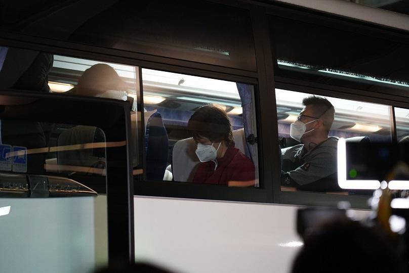 抵达机场时,女排队员进行了核酸检测等相关手续,在落地4个多小时后离开机场。