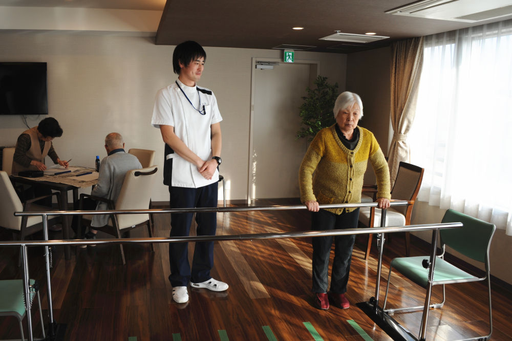 2017年,在位于日本东京品川区的养老院“日医HOME南品川”,一名老人在活动身体。(新华社记者华义摄)