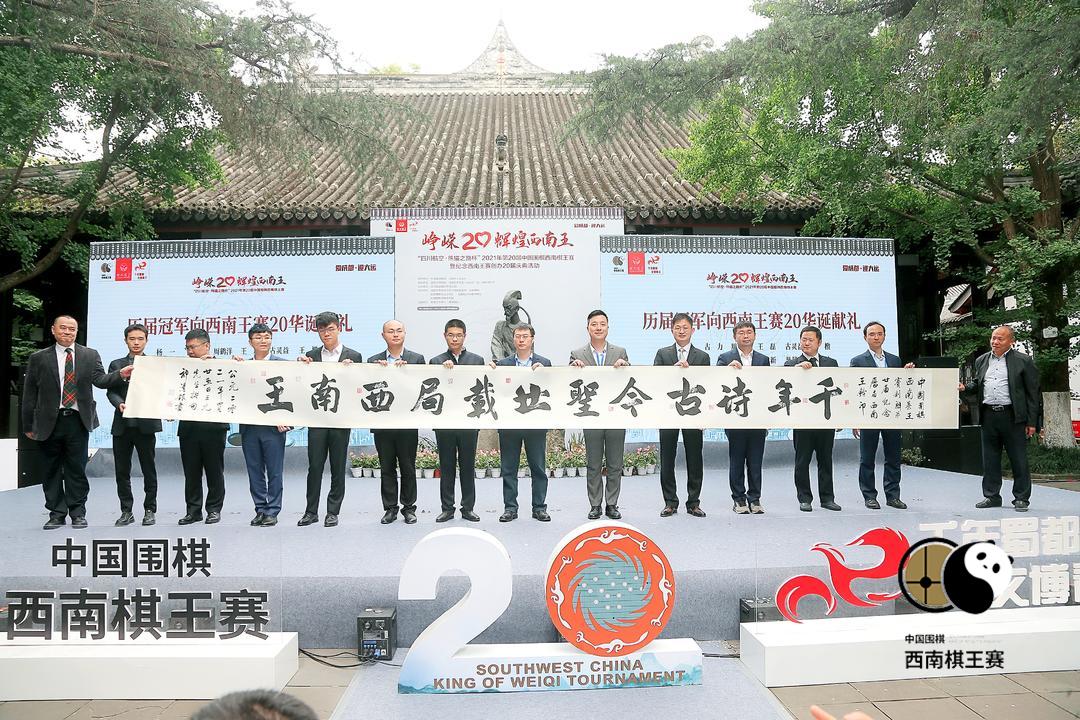 当天赛场内激战的同时,场外的西南王20届庆典上,杨一、古力、周鹤洋、王磊、古灵益等12位历届西南王赛冠军齐聚一堂。中国围棋协会主席林建超、中国围棋协会原主席王汝南、“棋圣”聂卫平、中国围棋协会副主席常昊和华学明、原副主席华以刚、四川省围棋协会名誉主席龚锦华等中国围棋名宿亮相“锦观·棋城讲坛”主题活动,一同回顾了西南王20年的辉煌历程。