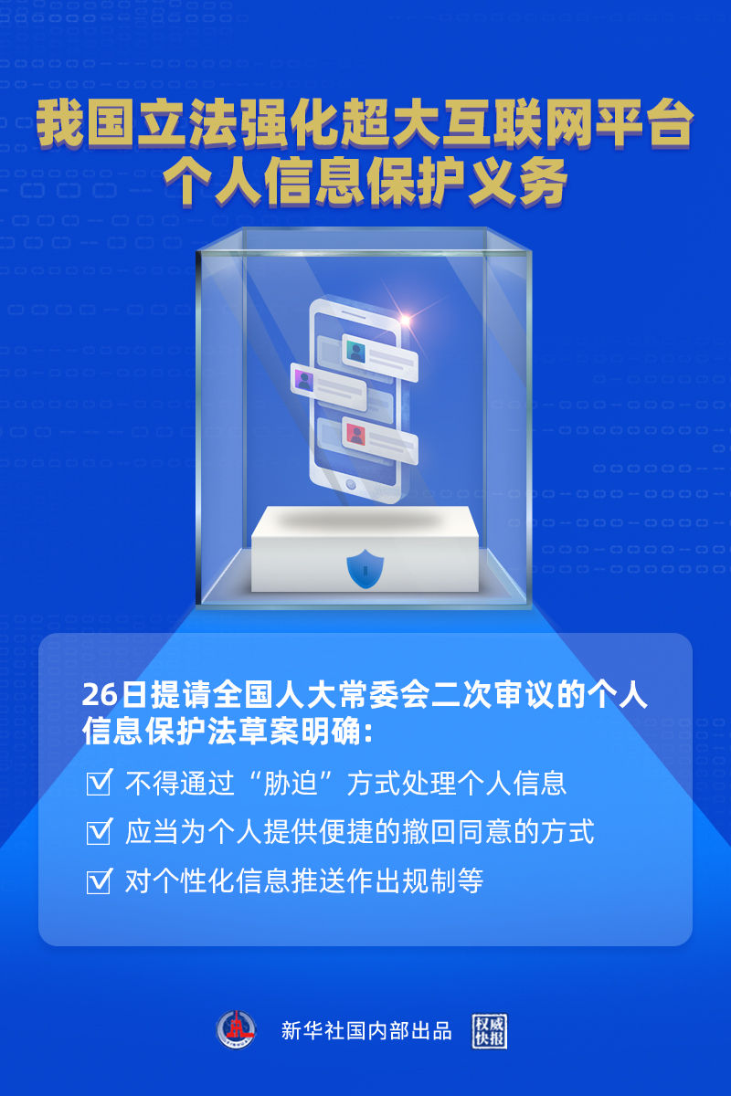 26日提请全国人大常委会二次审议的个人信息保护法草案拟规定,