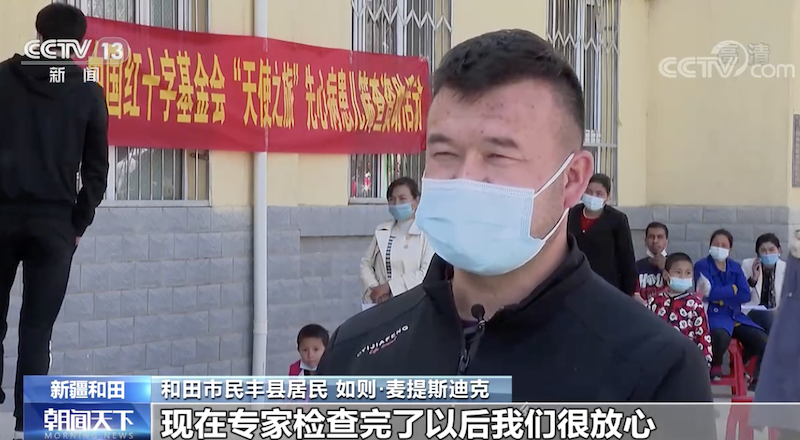 和田市民丰县居民 如则·麦提斯迪克:我女儿检查之前我们很担心,现在专家检查完了以后我们很放心,专家给我们说是国家给你免费做手术,我希望我女儿的病快点好起来。