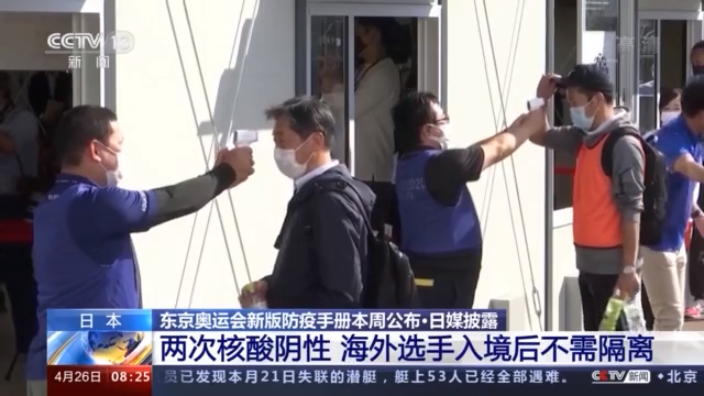 东京奥组委预计将于本周三公布新版的“奥运会防疫手册”。据日本媒体透露,根据新的规定,海外运动员和教练等主要参会人员入境日本前96小时需要在本国或地区得到阴性的核酸检测证明,入境时需要在机场接受二次检测确认阴性,而一旦入境日本将可以立刻展开训练,不需要隔离。