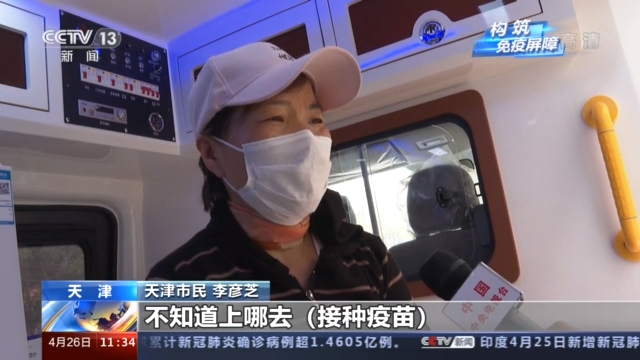天津市民 李彦芝:61了,不知道上哪去(接种疫苗),也不认识,也不方便,大家腿脚也都有毛病,(这个疫苗移动接种车)开到家门口挺好的,方便多了。