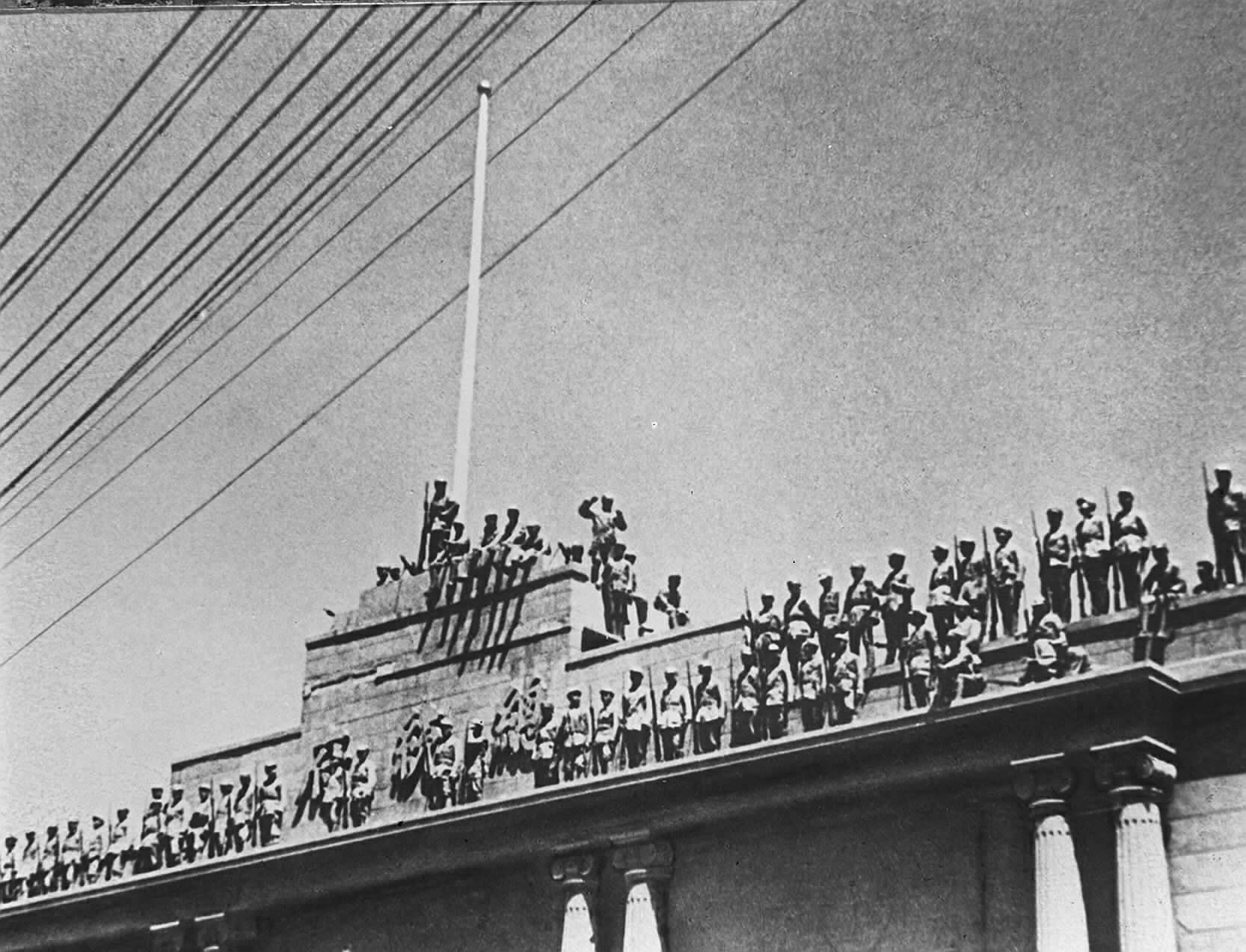 1949年10月1日下午三时,中华人民共和国开国大典在北京天安门广场举行。毛泽东庄严宣告:“中华人民共和国中央人民政府今天成立了。” 新华社图片