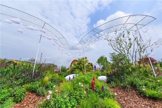 整个展区既有网红元素、互动体验,也有精致现代的景观小品,结合层次分明、色彩丰富的花境,把网红、高科技互动、可参与性有机结合,呈现出高新区特色的场景化花境。