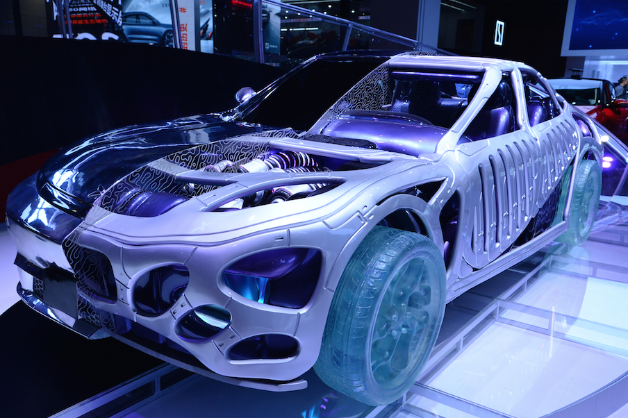 ▲2021年4月21日,第十九届上海国际汽车工业展览会现场,极氪汽车展台现场,一辆采用3D打印技术制造的轿车模型吸引观众眼球。图/IC photo
