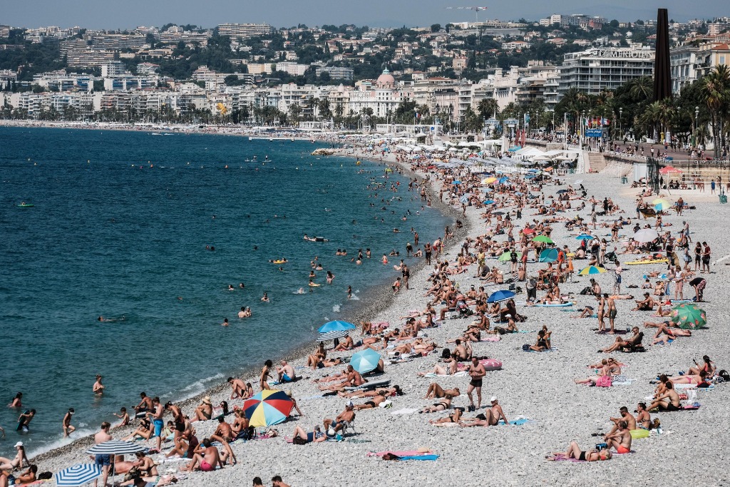 2020年7月22日,人们在法国南部度假胜地尼斯的海边休闲。(新华社发,塞尔日·阿乌齐摄)