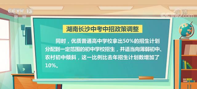 央视网消息:在湖南长沙、株洲等地,今年的中考中招政策方面也有较大调整,其中,长沙市取消直升生招生计划、加大优质高中向普通初中招生倾斜力度,株洲全市实行划片招生等变化引发家长和学生的关注。