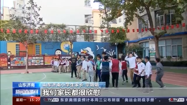 山东济南市学生家长 宗娟娟:我们来自河南农村,在济南安了家。按照济南的政策,两个孩子都在家门口上了学,而且还是一所重点的小学。孩子在学校里能够健康快乐地成长,我们家长都很欣慰。