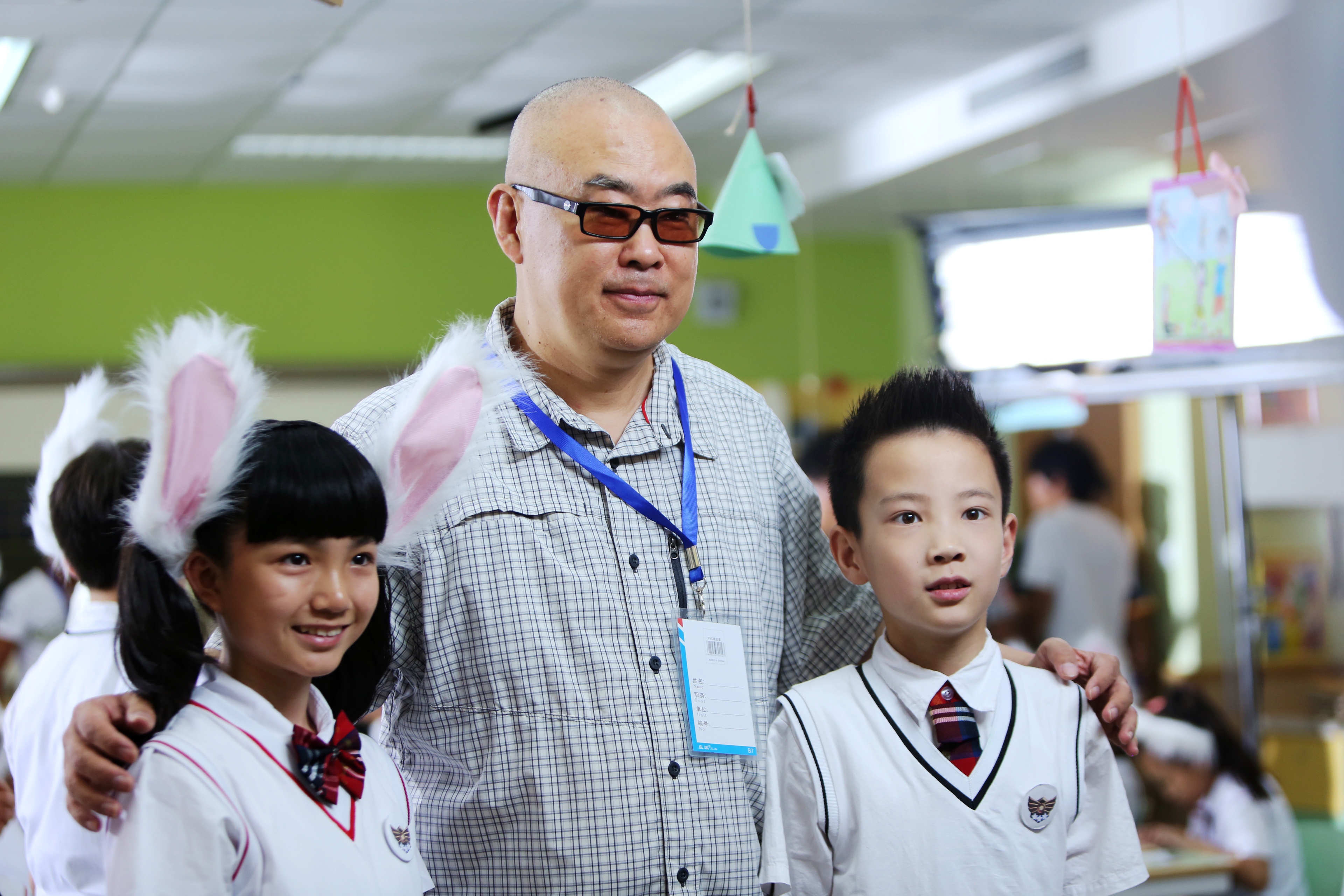 2014年6月28日,童话大王郑渊洁与电视剧《皮皮鲁和鲁西西》,“皮皮鲁”(右)、“鲁西西”扮演者合影。新华社记者 潘思危 摄