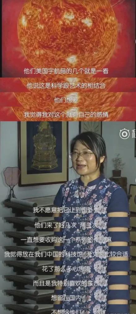 2012年,陈英华受邀参加第28届“国际天文联合会”的展出。她带着两个系列24幅作品,在联合会上惊艳亮相,再一次成为了全场的焦点。美国航空航天局(NASA)一眼看中,多次提出高价购买请求,都被陈英华拒绝了。她说, “我想让它留在国内的科技馆,让更多中国人看到。”
