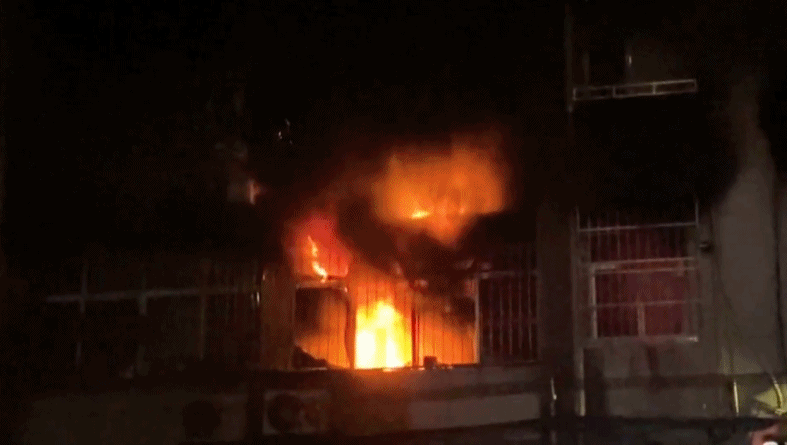 当地消防救援人员赶到现场发现:该家属院3单元2楼一房屋着火,起火部位在客厅,现场火势猛烈、浓烟弥漫。屋内有1名成年女子和1名5岁小女孩被困卧室阳台。