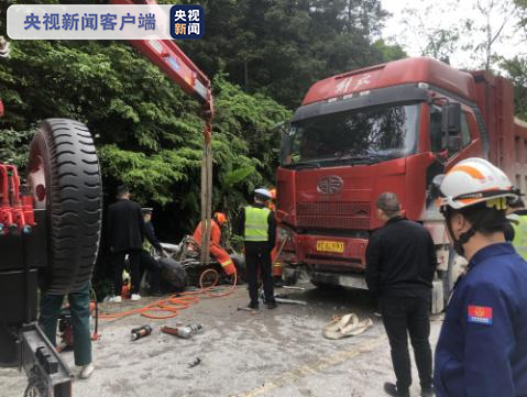 4月26日,在贵州黎平县发生一起交通事故,一辆小型货车行驶到一处转弯处时,被对面行驶而来的一辆大货车撞飞坠入河道,小货车驾驶员被困,接警后,当地消防部门与交警、医疗展开了救援。