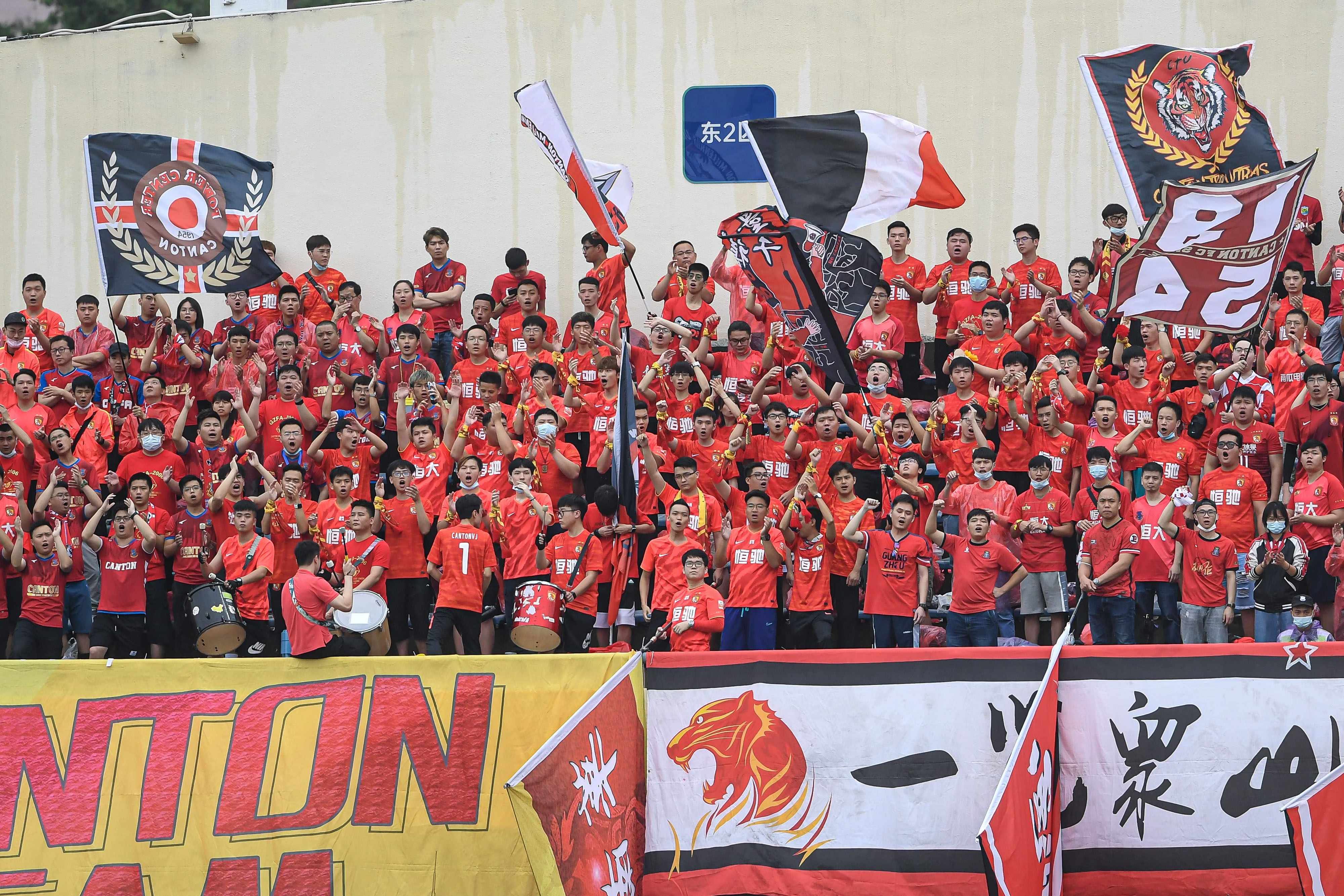 4月27日,广州队球迷在比赛中为球队呐喊助威。新华社发