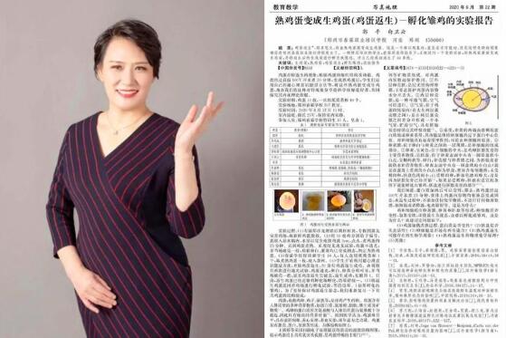 根据公开资料显示,该论文发表于2020年6月份的《写真地理》杂志。作者为郑州市春霖职业培训学校校长郭萍、河南某医院的主任医师白卫云。文章称:鸡蛋返生,顾名思义,由熟鸡蛋变成生鸡蛋。这是一个难以想象甚至是不可能的事,但这样奇特的现象,确实在郑州春霖职业培训学校发生了。一群特别培训的学生在郭萍老师指导下,正在进行一个奇特实验,即熟鸡蛋重新变成生鸡蛋,并将返生后的生鸡蛋孵化成雏鸡,并且已经成功返生了40多枚。实验的过程分为五步:取蛋、煮蛋、装蛋、返生、孵化。其中返生步骤为:学生开始利用超心理意识能量方法,开始鸡蛋返生;20分钟后鸡蛋返生成功;由观察员再次进行透光试验,鸡蛋透光,卵白、卵黄分明可见,并当场破壳一枚,证实鸡蛋返生呈液态,返生成功。关于孵化阶段,论文中提到,目前将返生鸡蛋送回养鸡场进行孵化试验等待结果。此后,郑州春霖学校实验室和新郑市郭店“园之原”家庭农场在《写真地理》杂志2021年3月第11期,发表名为《“熟鸡蛋鸡蛋返生孵化雏鸡”实验报告(孵化阶段)》一文,该论文称,熟鸡蛋返生已经实验成功。为了研究返生后的鸡蛋是否具有生命力,郑州春霖学校郭萍老师、郭店鸡场郭太安老师及其他爱好者密切关注孵化进程。最终成功孵化出新的雏鸡,提示熟鸡蛋返生后的鸡蛋同样具有生命力。