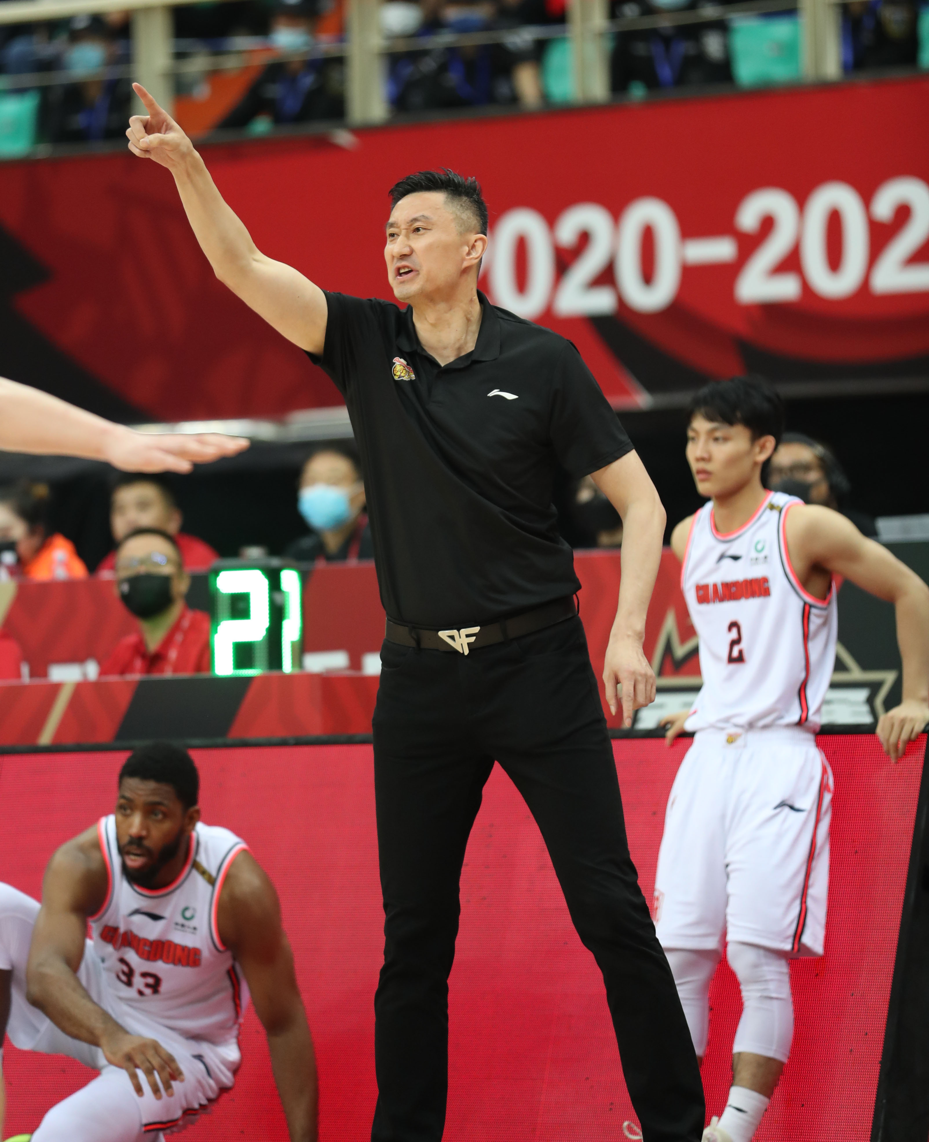 4月27日,广东队主教练杜锋(中)在比赛中指挥。新华社记者孟永民摄