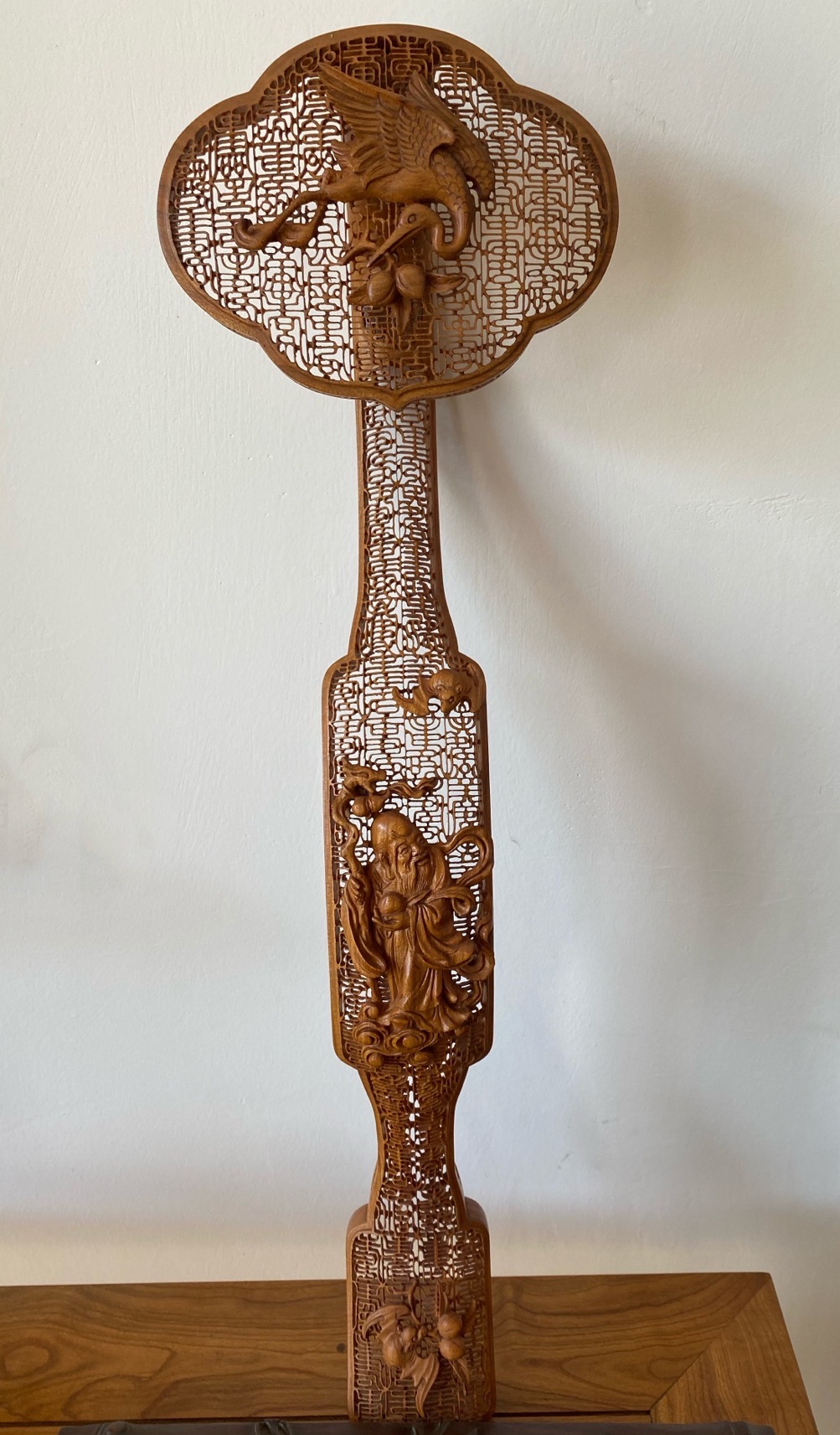 仙鹤、梅花鹿、松树……象征吉祥福禄的图案都在一方木如意上呈现,其间密布精美镂空花纹。在孔子家乡山东曲阜,每逢婚嫁寿辰等人生重要时刻,楷雕如意总是最佳伴手礼。
