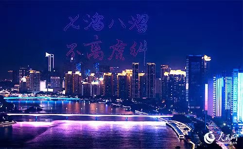 4月24日晚,在福州,1500架无人机“点燃”夜空,演绎出“数字中国建设峰会”“七溜八溜,不离虎纠”“中国古船乘风破浪”等不同文字和图案,被市民们称为“超燃应援”。