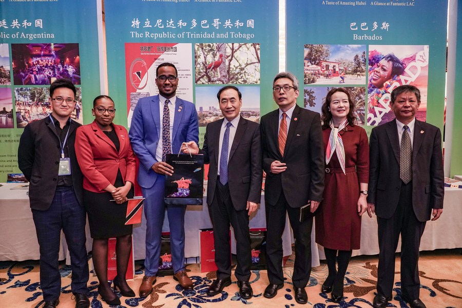 在交流会现场,红酒、木薯酱、朗姆酒等具有拉美和加勒比国家元素的美食,和玉米、茶叶、香菇酱等湖北特产“相遇”,吸引各国代表的目光。多国大使在展位前现场“带货”,让湖北消费者一睹为快、一品为快。