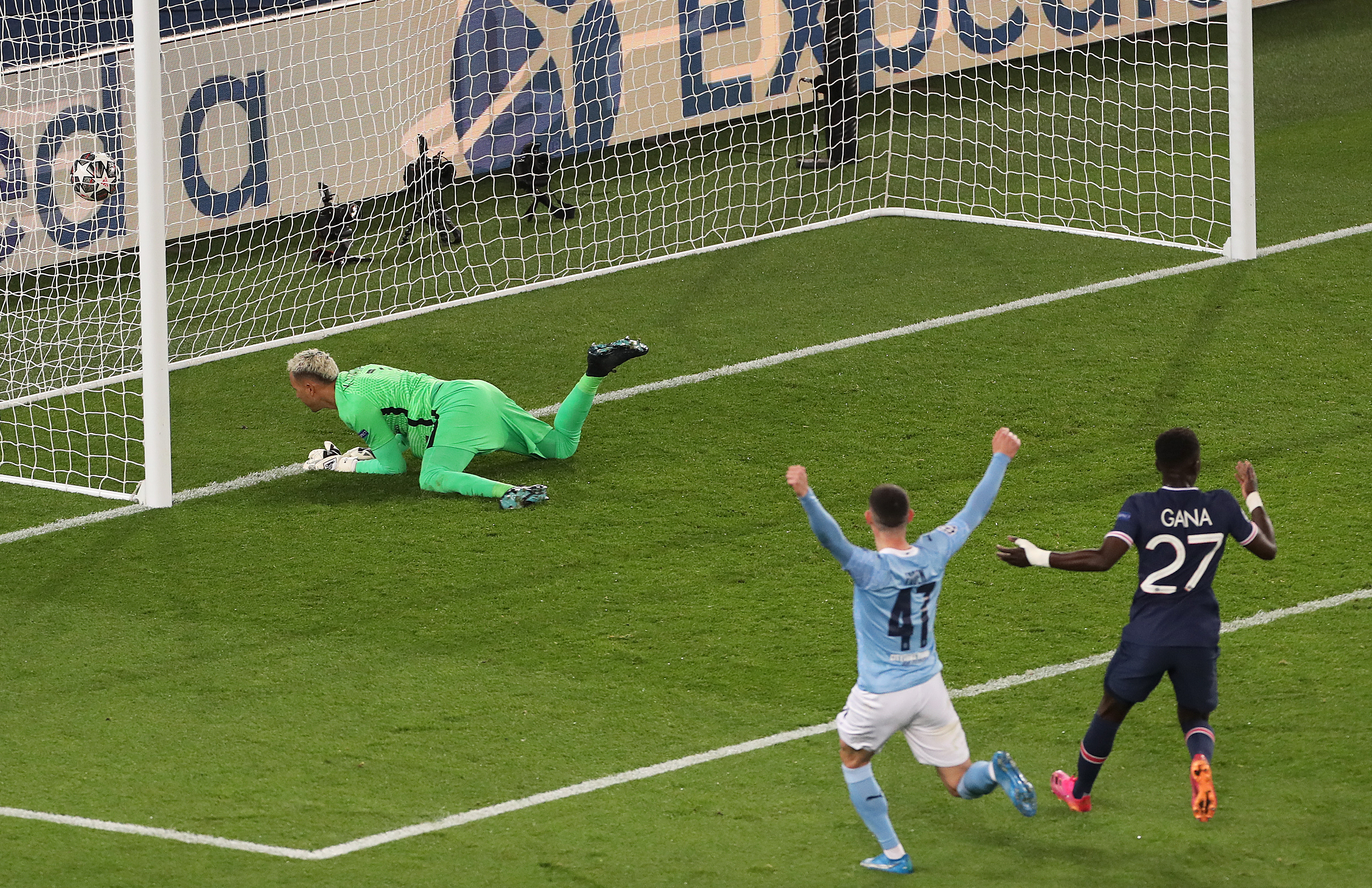 巴黎圣日耳曼队球员纳瓦斯(左)未扑出进球。新华社记者高静摄