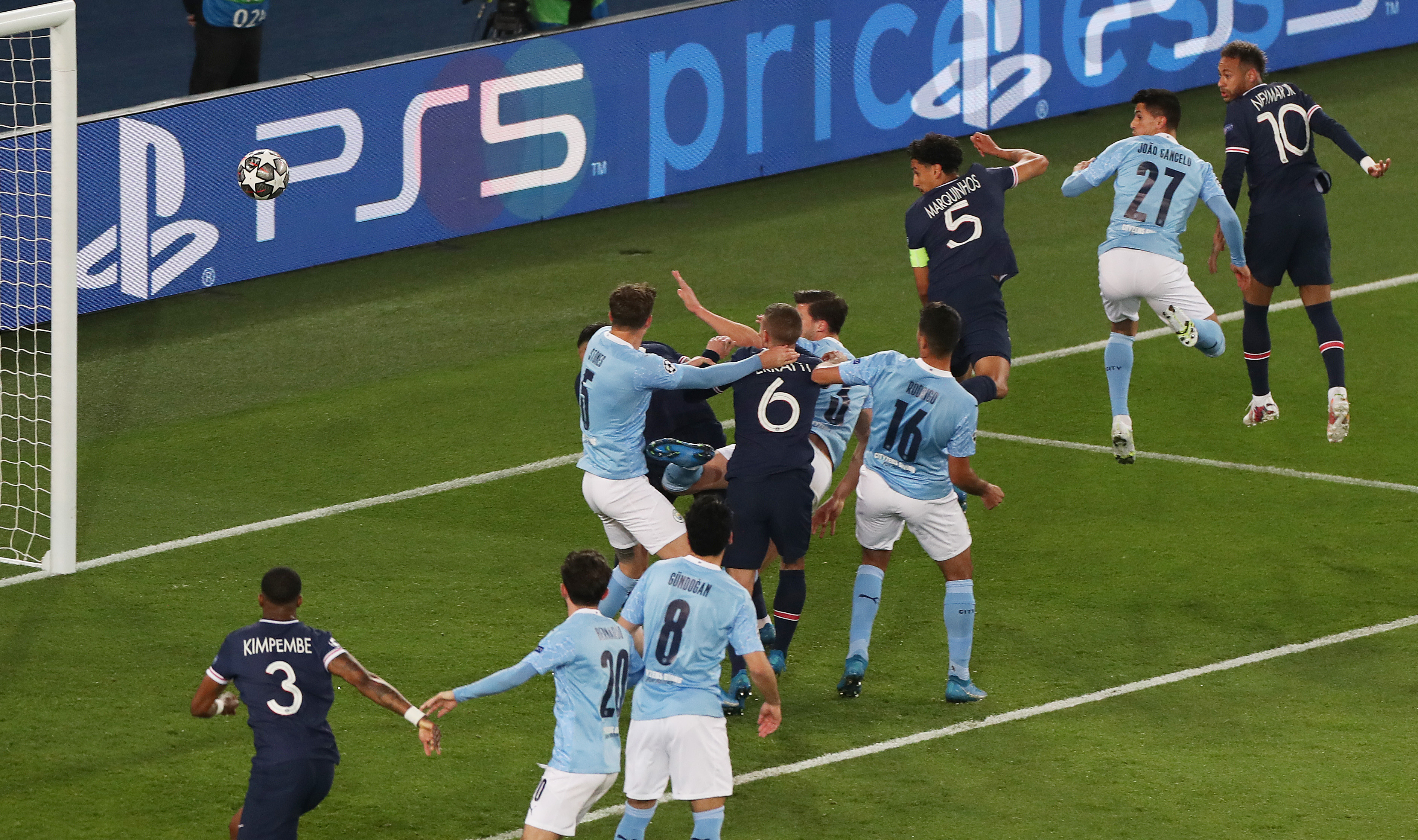 由内马尔、姆巴佩以及迪玛利亚组成的锋线组合在上半场相当活跃,多次给曼城队后防造成险情。反观“蓝月亮”这边,球队擅长的控球打法并没有产生太好效果。