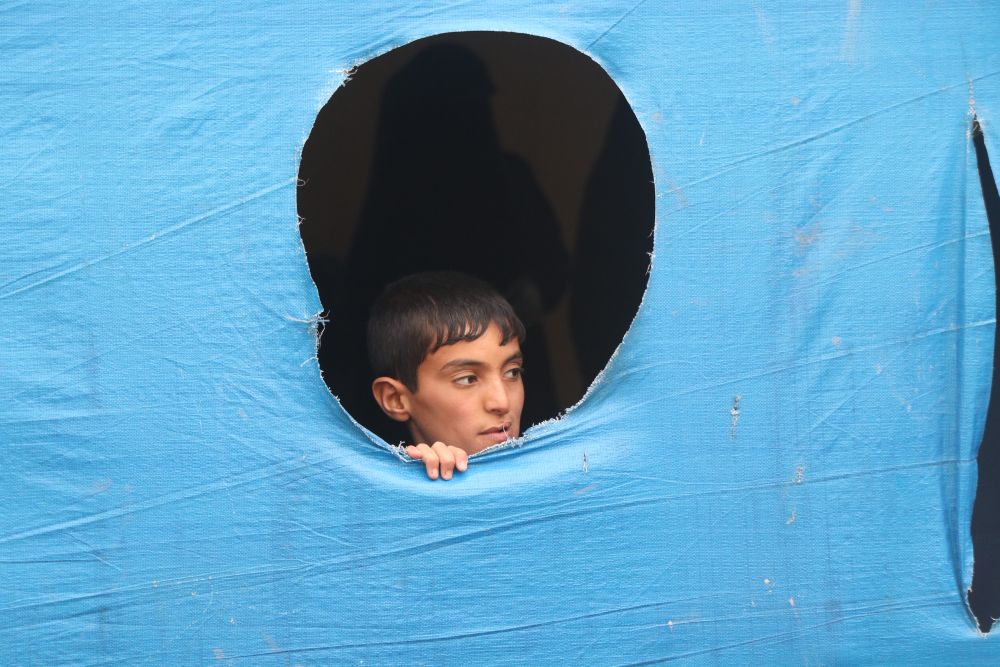 2020年11月16日,一名男孩在叙利亚东北部哈塞克省霍尔难民营向外张望。新华社发