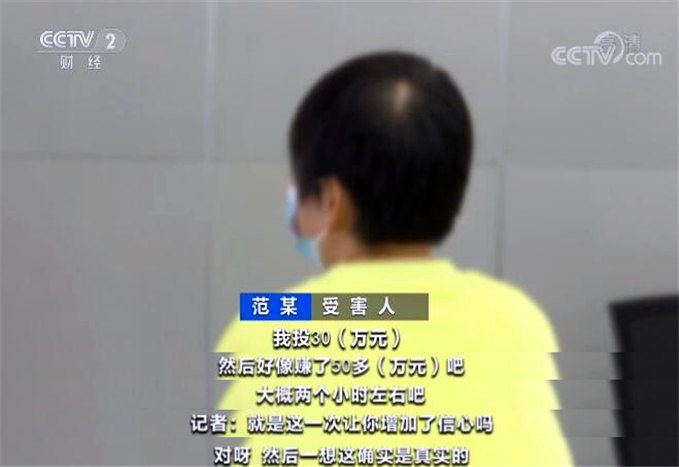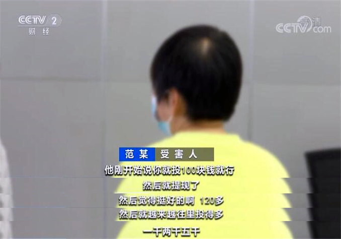 大连市开发区刑侦大队民警 姜祎山:引导你投资的这个过程当中也在不断地和你交流,就是看看你到底是一个什么经济状况或者你能够投资出来多少钱,会有这样一个过程,他觉得你可能像只能拿出20万或30万,当你把这笔钱投进去了之后他就会直接给你杀死,这笔钱就直接给你黑掉。