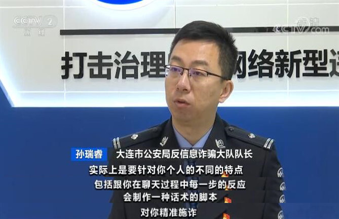 大连市公安局反信息诈骗大队队长 孙瑞睿:我们现在反诈中心已经入驻了六大国有银行包括三大运营商的人员,比如说一个案件发生之后,我们驻点银行就可以发挥紧急止付、冻结这个效能,实际上是大大提升了我们对资金挽损的一种效能。记住一句话,就是任由骗术怎么变,我不转账应万变。