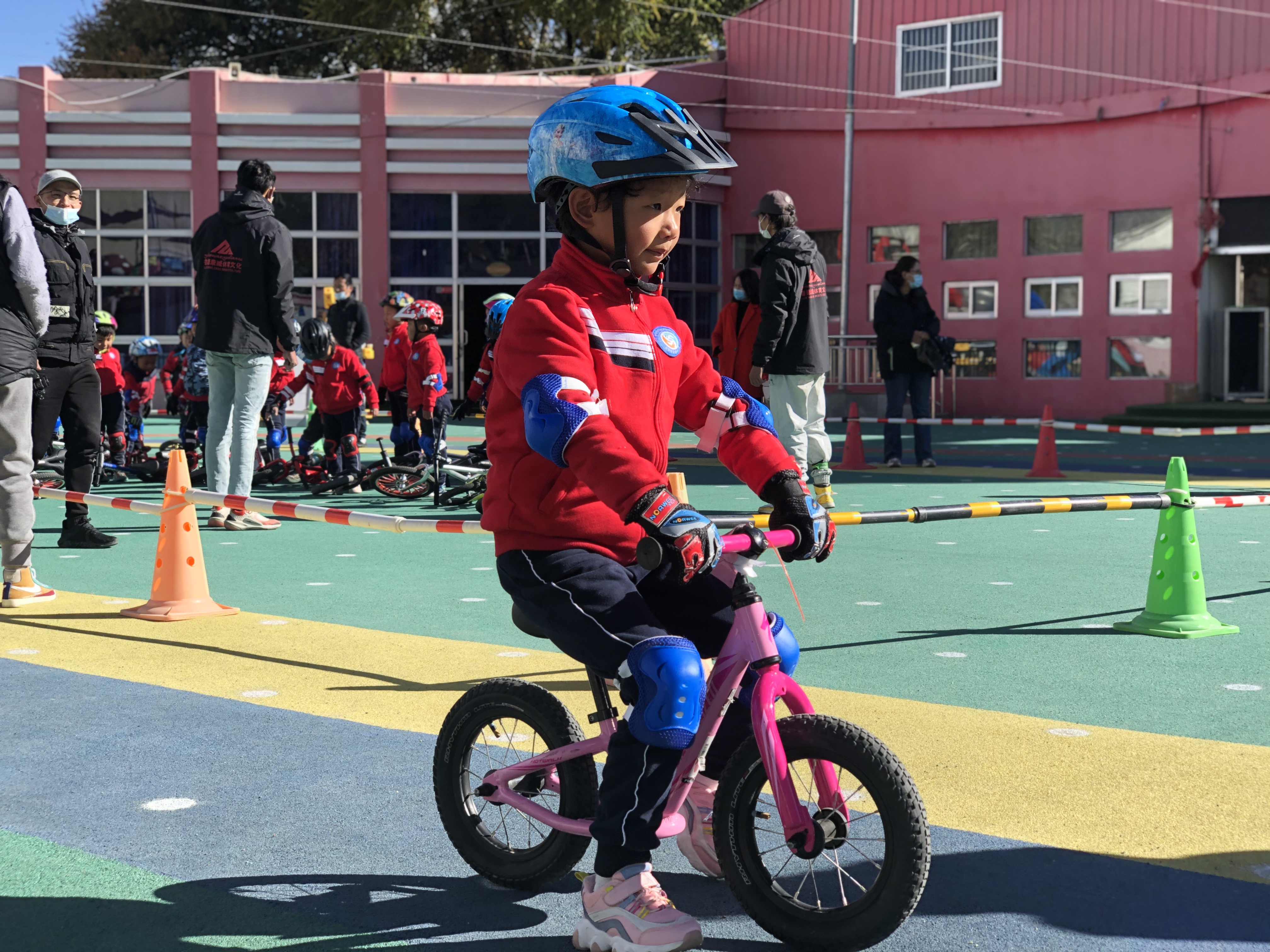 拉萨市实验幼儿园的孩子正在学习骑滑步车(2020年11月17日摄)。 新华社记者金一清摄