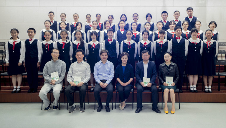 杨力教授在致辞中介绍了本次活动在合唱团发展史上的重大意义,感谢大家一起见证此次艺术与科技的紧密结合。北京爱乐合唱团的孩子们现场演唱了《翠谷双回声》。在嘉宾们的惊叹声和掌声中,孩子们又唱了《春回大地》《嘀哩嘀哩》,用天籁般的歌声感谢所有为我国航天事业辛勤付出的科学家们。最后,杨力教授向项军华博士交付了北京爱乐合唱团徽章,唐重庆教授向白瑞雪女士交付了歌曲《翠谷双回声》CD及曲谱。(作者:赵碧清主播|郑琬)