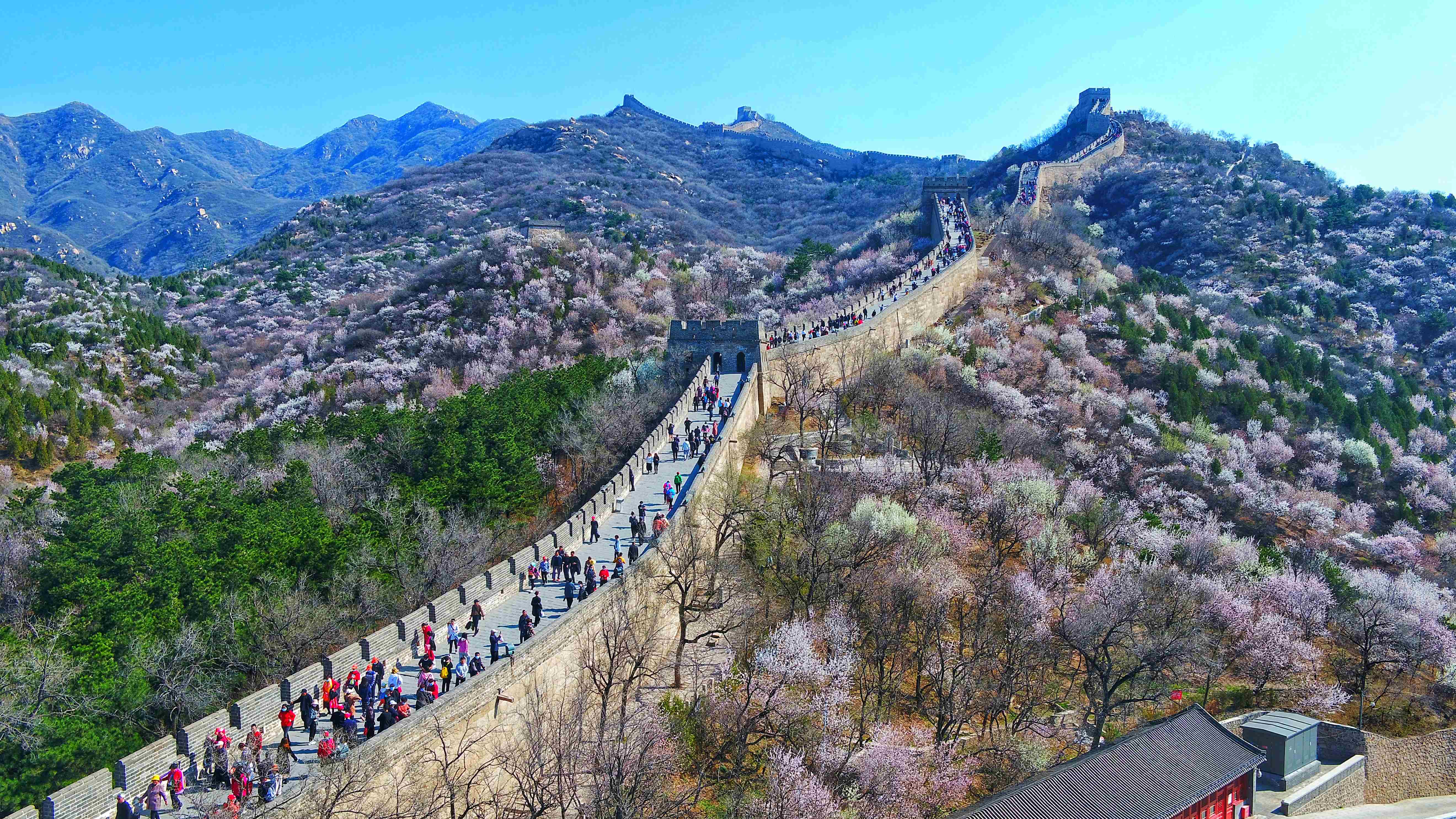 八达岭长城景区春景。(新华社发)