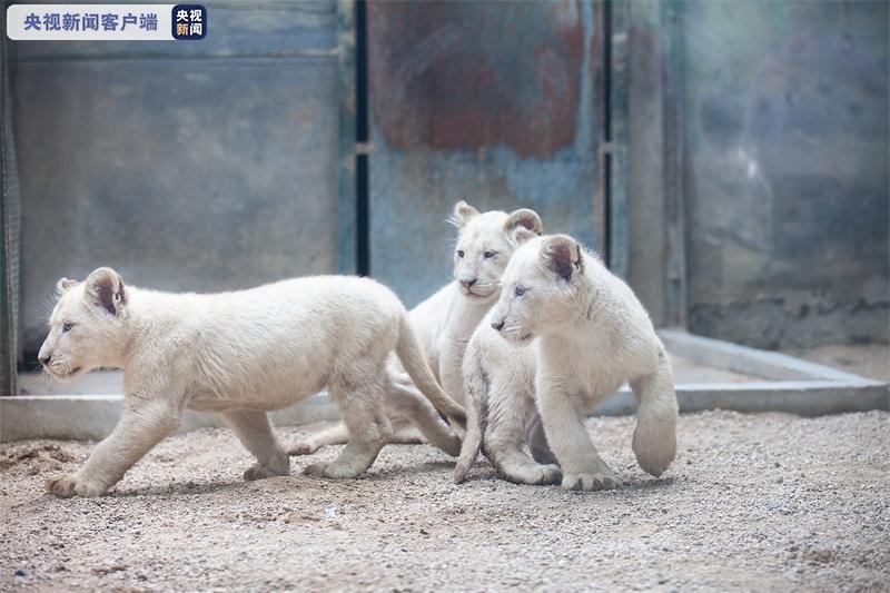 在饲养员和狮妈妈的照料下,三只“银发碧眼”的小白狮健壮可爱,活力十足!它们目前已经能吃肉了,可牙口很嫩,为了让小白狮们适应嚼食,饲养员会将它们的肉食切成小肉丁,定时定量投喂,保障它们的健康成长。