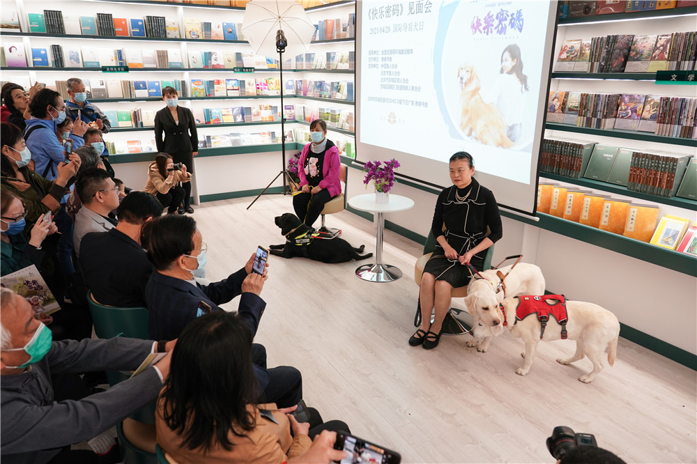 今年4月28日是国际导盲犬日,在北京市东城区无障碍书店善缘书舍,一部以导盲犬为主题的电影《快乐密码》进行了无障碍试映,视障人士也可以通过无障碍辅助设施观影。