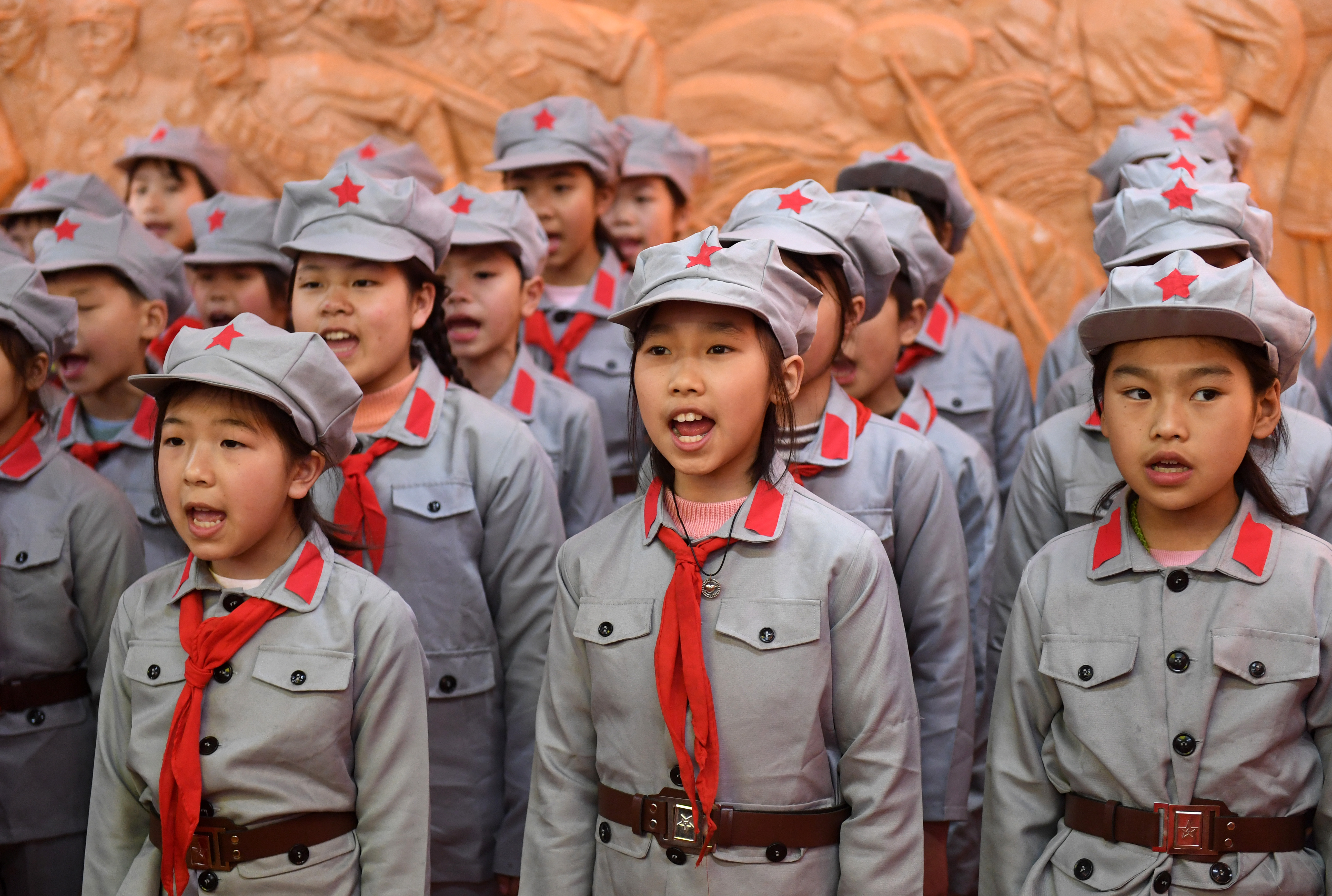 在全州县凤凰镇和平红军小学,学生正在演唱红色歌曲《过湘江》(新华社记者陆波岸4月26日摄)。