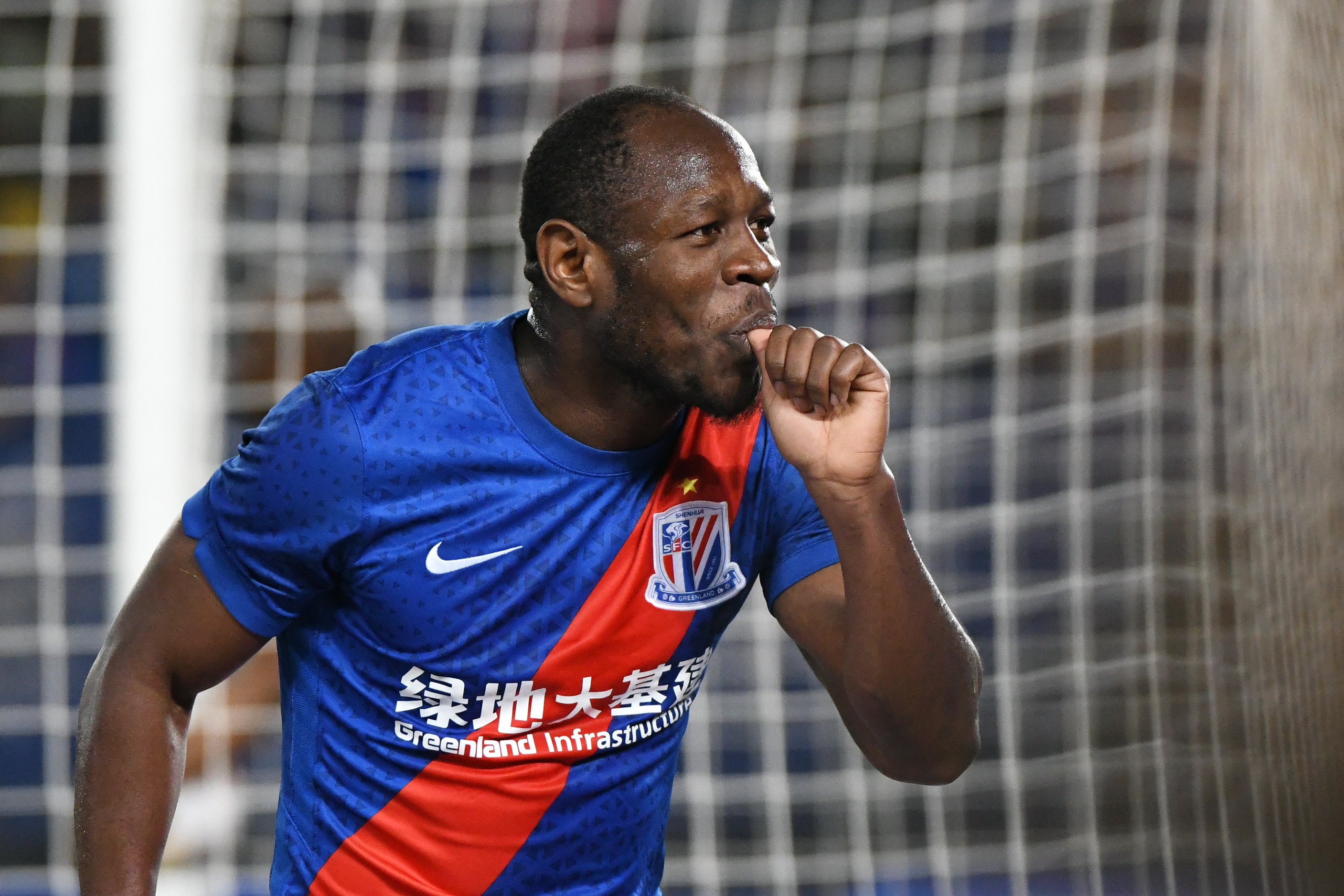 4月29日,上海申花队球员巴索戈在比赛中庆祝进球。新华社发(史康摄)