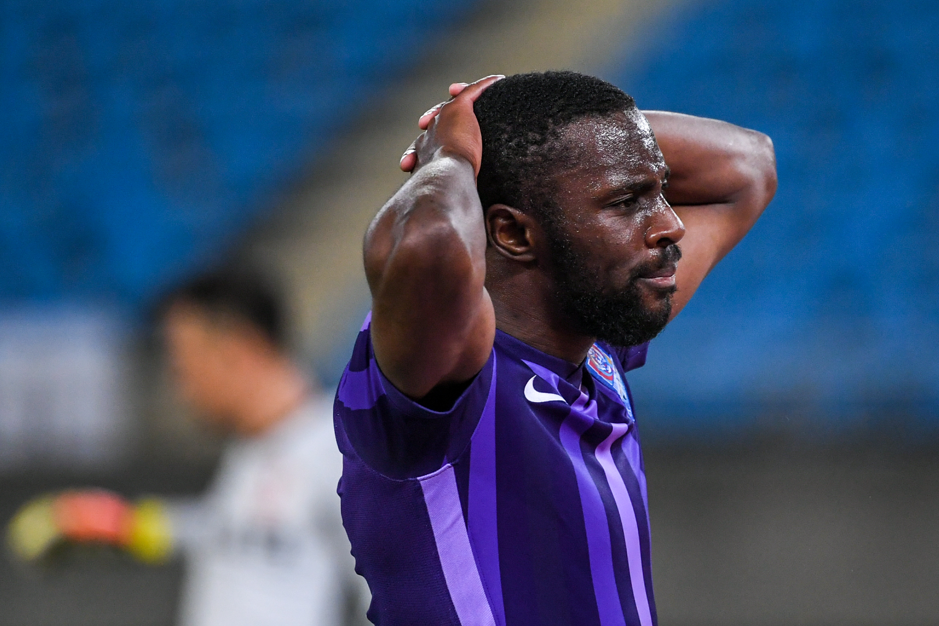 4月29日,天津津门虎队球员伊洛基在比赛中错失进球机会后。新华社记者李博摄