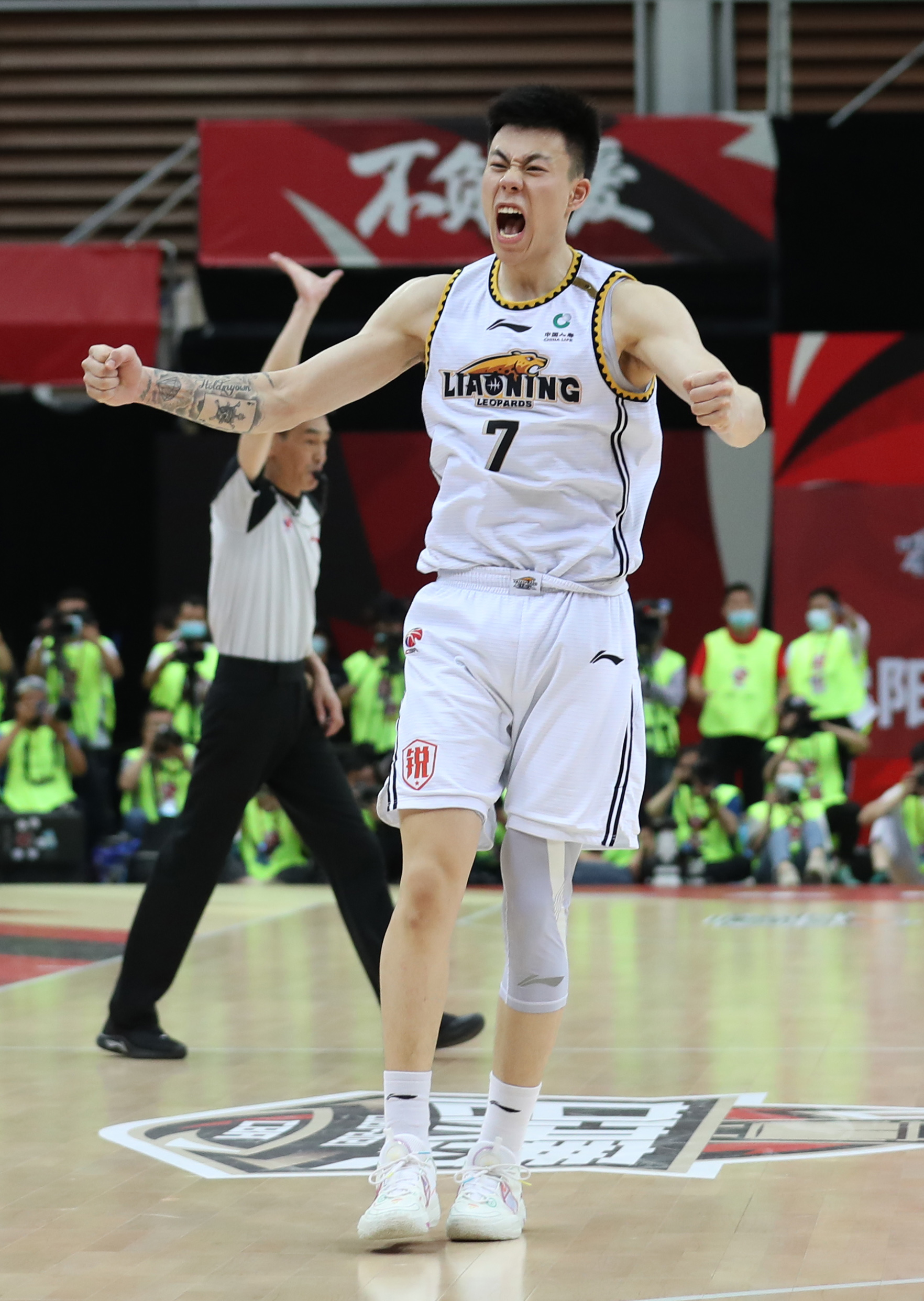 4月29日,辽宁本钢队球员张镇麟庆祝胜利。新华社记者 孟永民 摄
