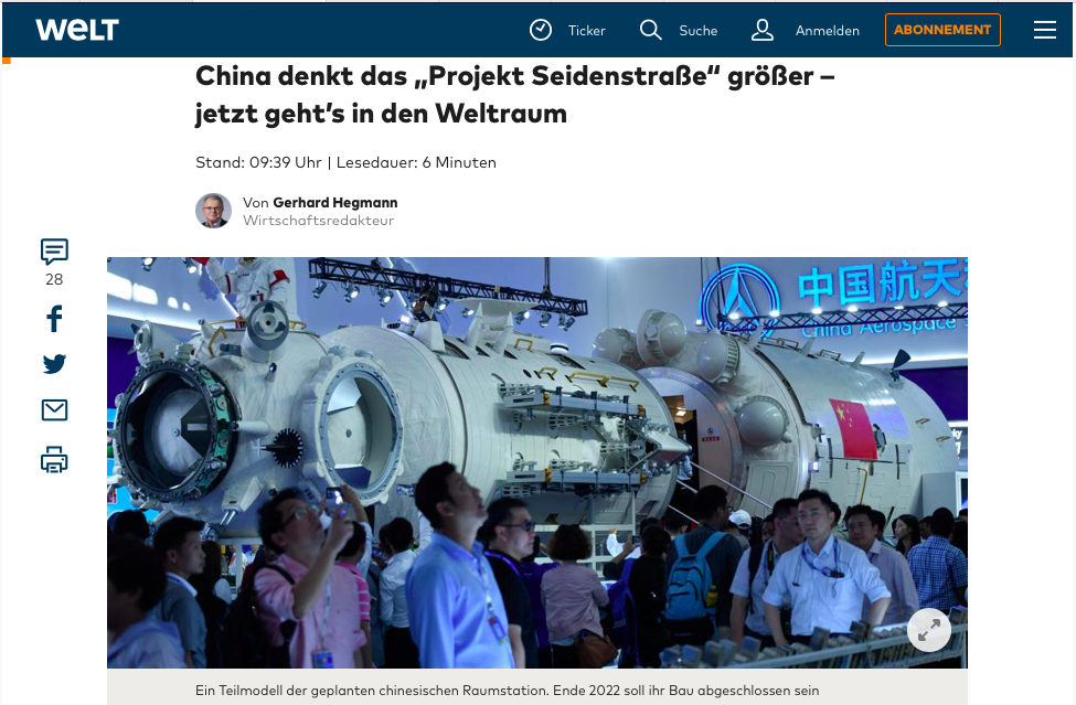 德国《世界报》在当地时间29日的报道中高度关注中国空间站天和核心舱成功发射,称中国的“丝绸之路”已经延伸到了太空——相比美国从未允许中国人进入国际空间站,中国打开了空间技术合作的大门。文章表示,虽然尚不清楚未来发射的载人飞船会把哪些宇航员送入太空,但也许欧洲航天局的宇航员届时也能够前往中国空间站。早在2017年年底,包括德国籍宇航员马天(马蒂亚斯·毛雷尔)在内的多名欧航局宇航员就曾前往中国与中国航天员共同训练。从2012年开始学习中文的马天在接受采访时曾表示,期待能和世界各国宇航员一起到中国空间站工作。