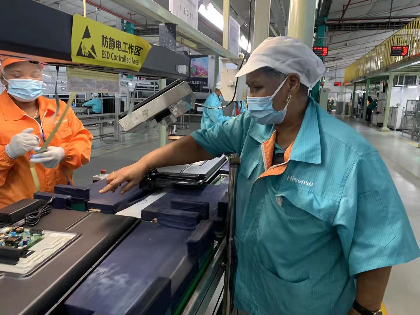 瓦莱丽·雅各布斯从最基层的一名工人干起,配合中方工程师传递一些产品生产技术文件。之前15年的生产班组管理工作,让她对当地的风俗民情、生产管理积累了丰富的经验。后来,被提拔成了生产组长,从一名普通工人变成了一名基层管理人员。2020年,她突出的工作表现再次得到了擢升,成为了一名生产主管。现在她不仅要负责所有工序的生产管理、安排生产计划、监督生产安全和防疫;还要考虑如何才能提高生产效率,提供问题解决方案,将生产计划任务和目标转化成实实在在的产品。