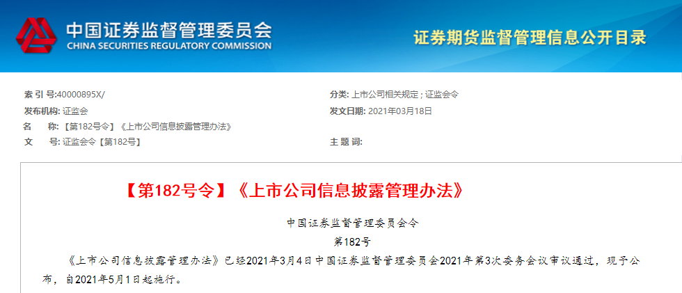 修订后的《上市公司信息披露管理办法》自2021年5月1日起施行。