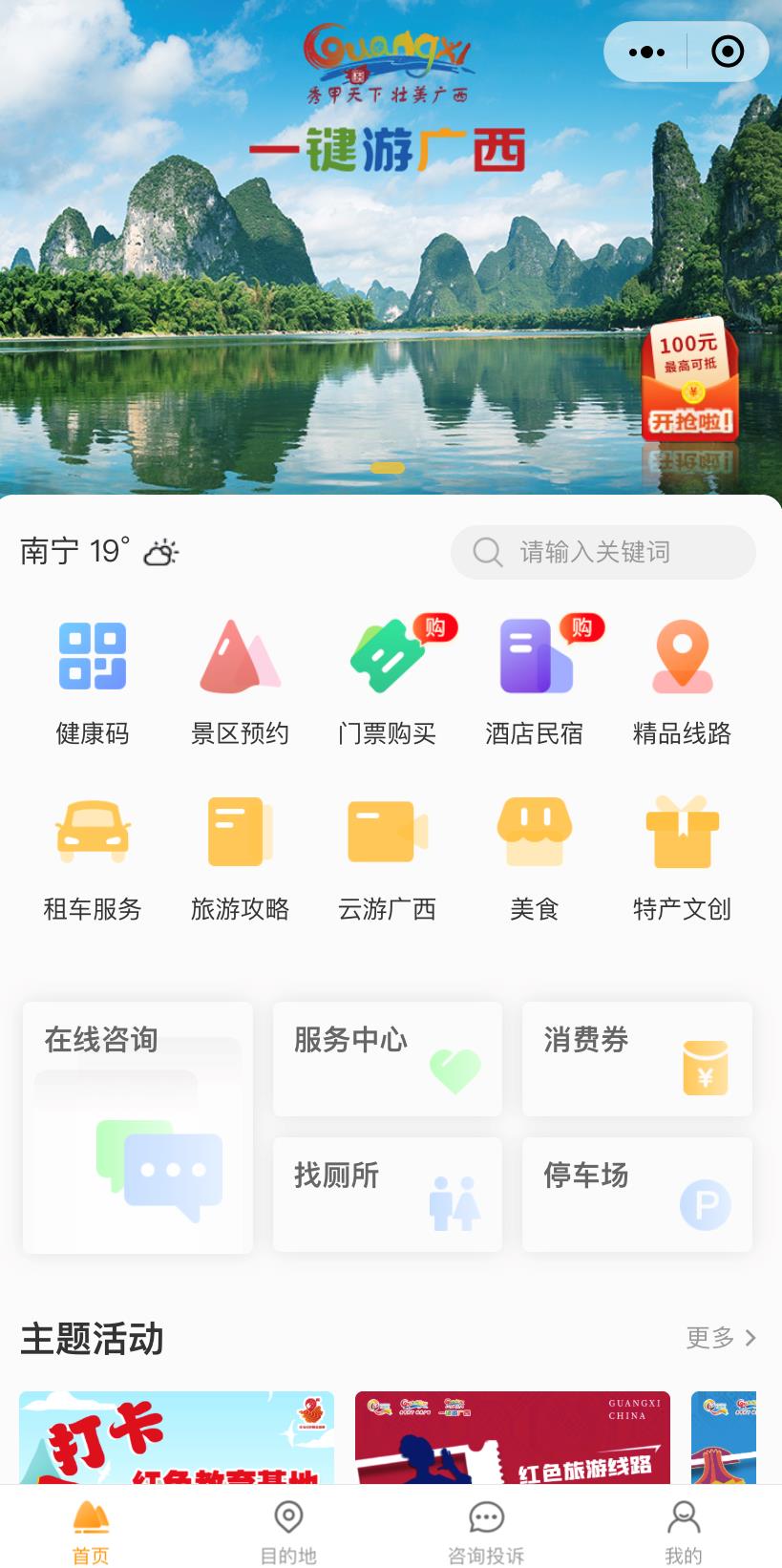 从4月28日至2021年7月31日,每天12时、15时、20时,“一键游广西”微信小程序将定量发放一定额度的广西文旅消费券。手机搜索微信小程序“一键游广西”,即可在线抢领。每个用户ID可领取面额为满50减10元、满100减20元、满500减100元的三种消费券,在广西范围内报名参与消费券活动的景区、酒店、餐饮、交通、名特优产品等多品类涉旅产品消费使用。
