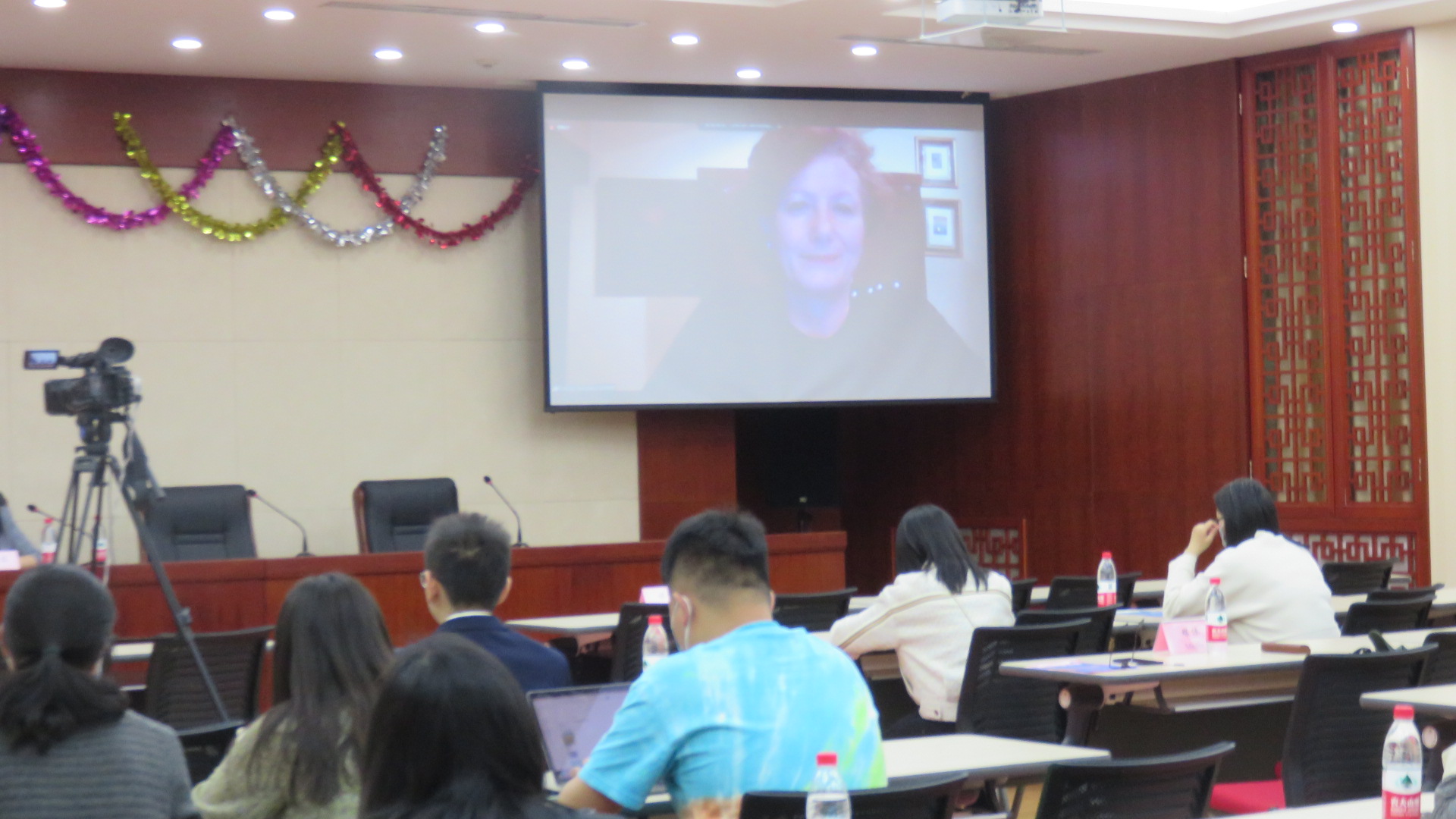 4月29日,“中拉大讲堂”启动仪式在京举行,图为拉丁美洲社会科学院秘书长阿尔特曼·博尔蓬女士线上致辞。新华社记者 黄勇贤 摄